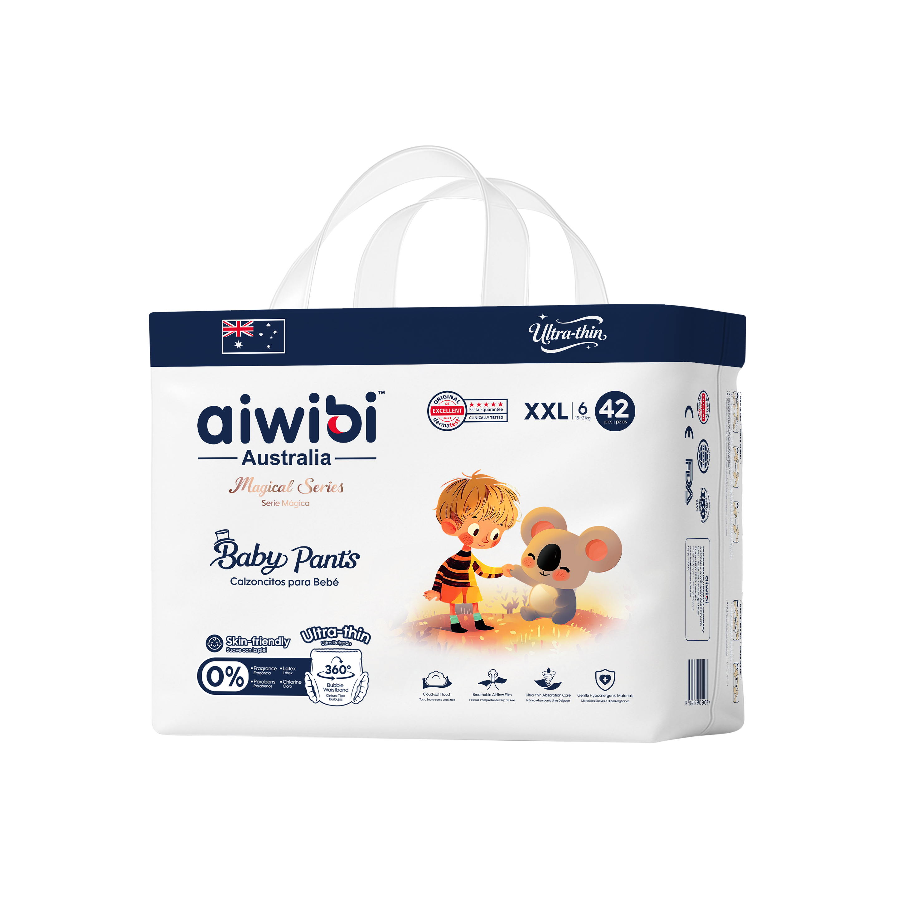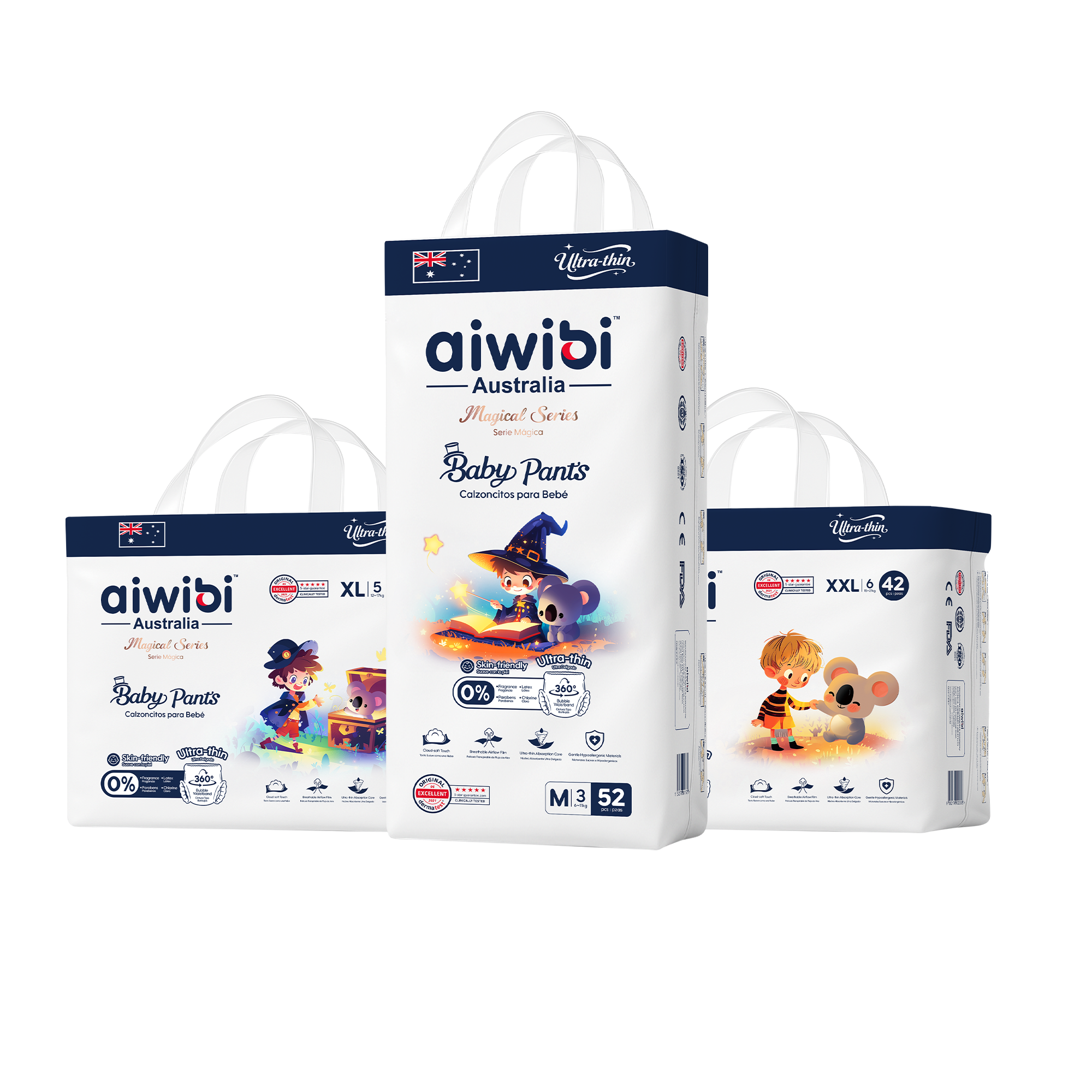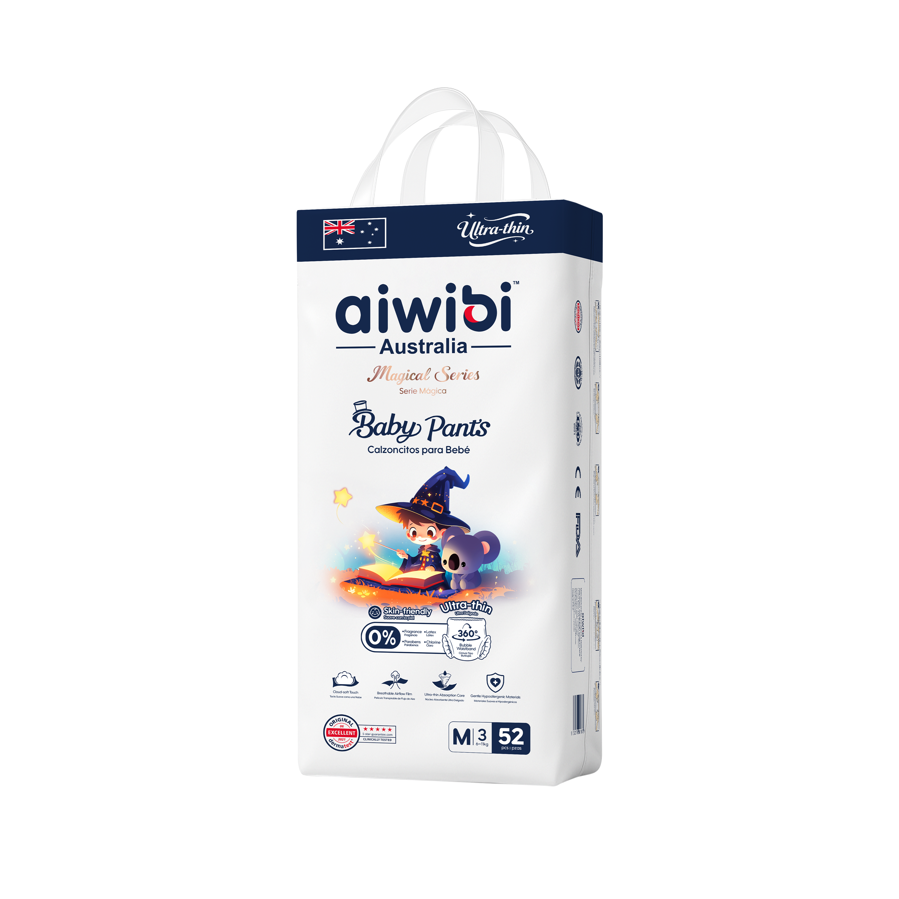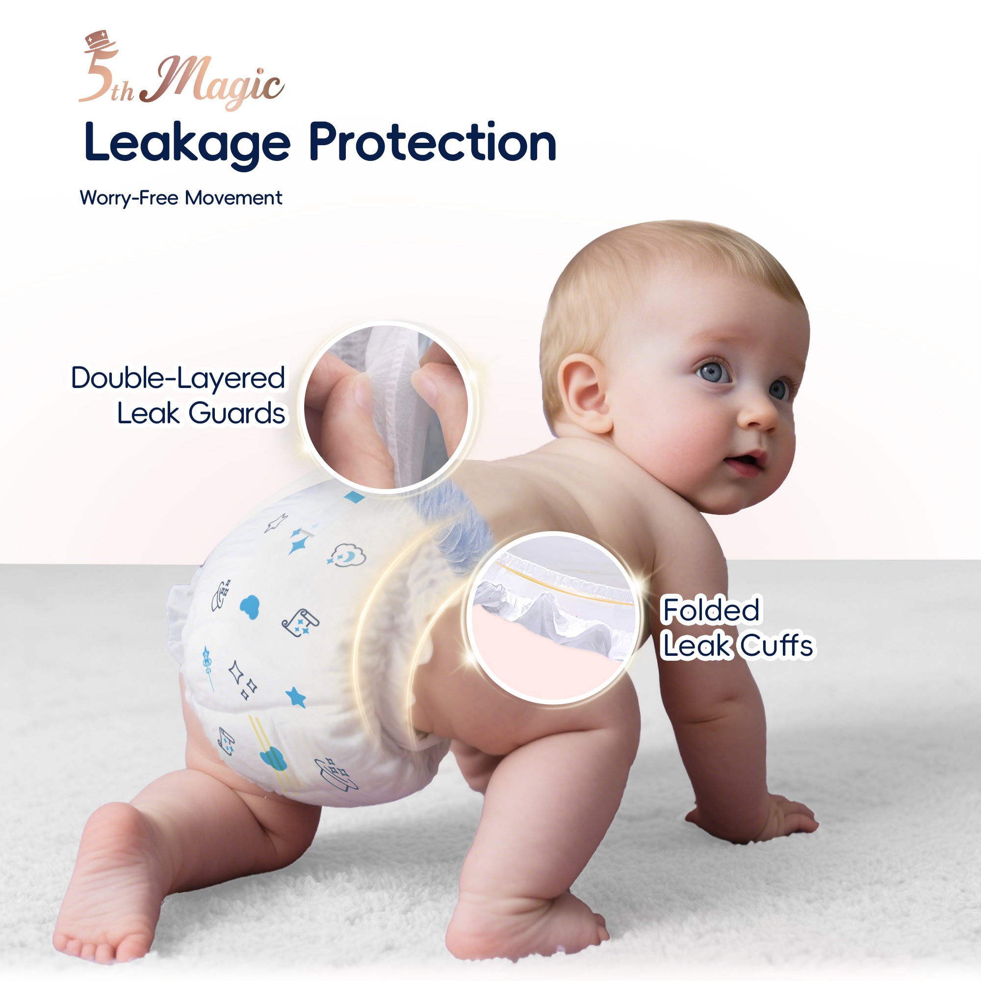 Designed for all-day comfort and dependable protection, Magical Series Baby Pants feature SilkySoft Fabric™ made from ultra-fine 1.2D fibers for a feather-soft, silky touch on delicate skin. The Ultra-Thin Core™, with a 0.1 cm naked-feel design and premium Japanese SAP technology, delivers fast absorption and long-lasting dryness without bulk. A flexible 360° Soft Bubble Waistband™ adapts to your baby’s movements, ensuring a snug, pressure-free fit with enhanced comfort.