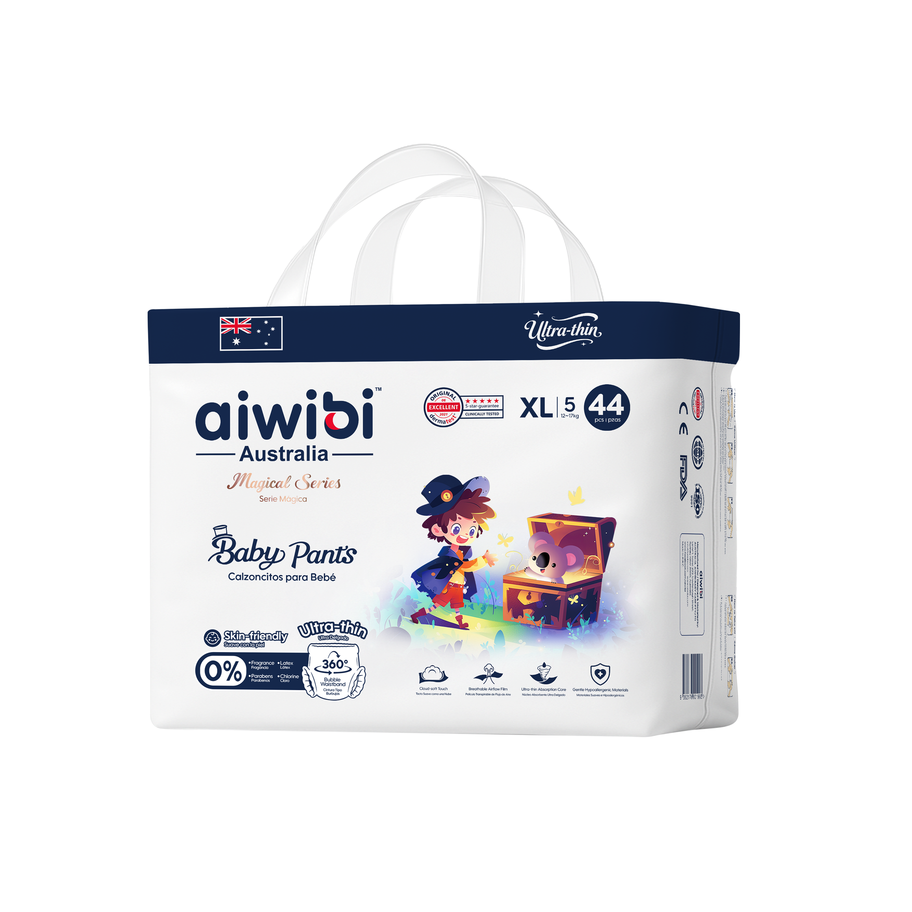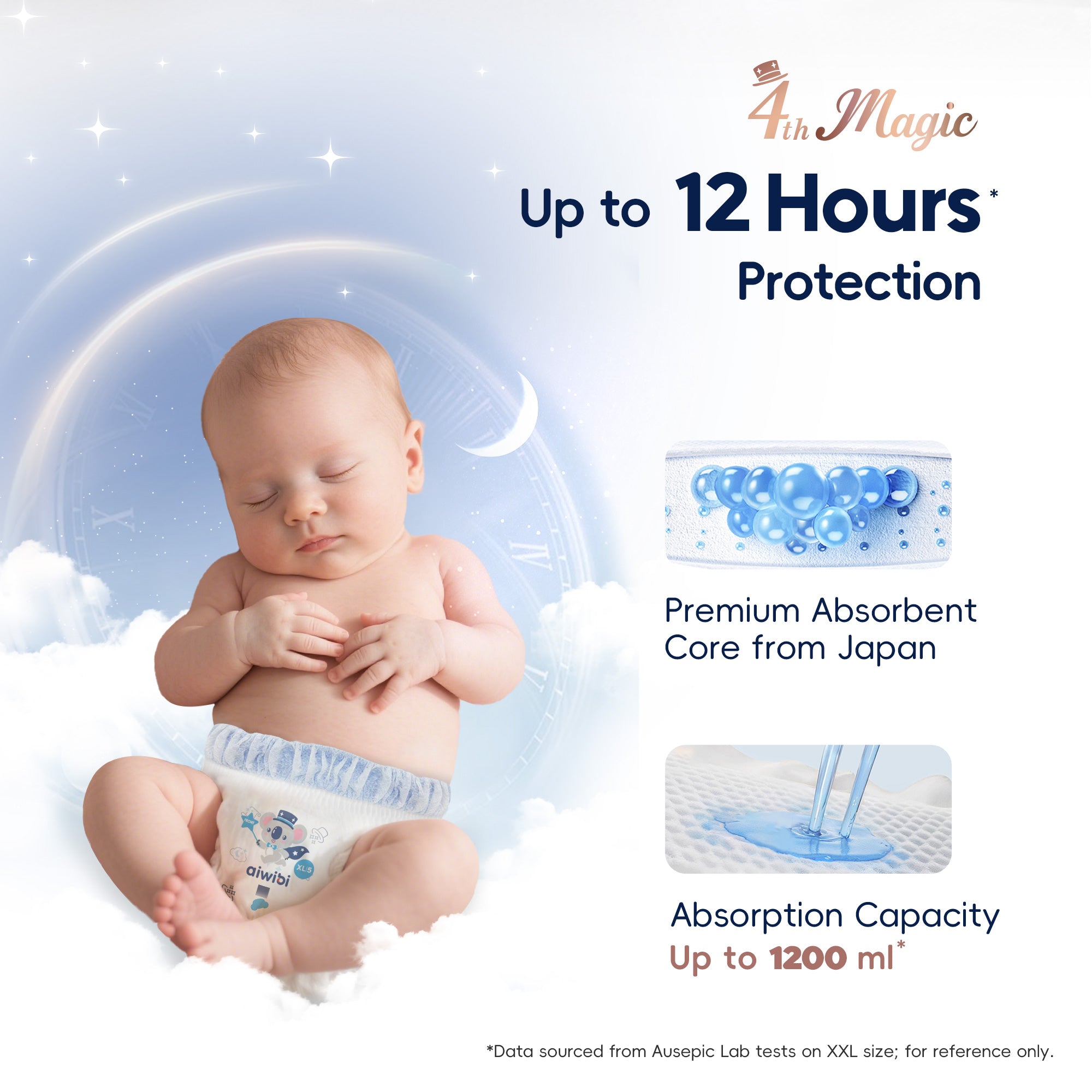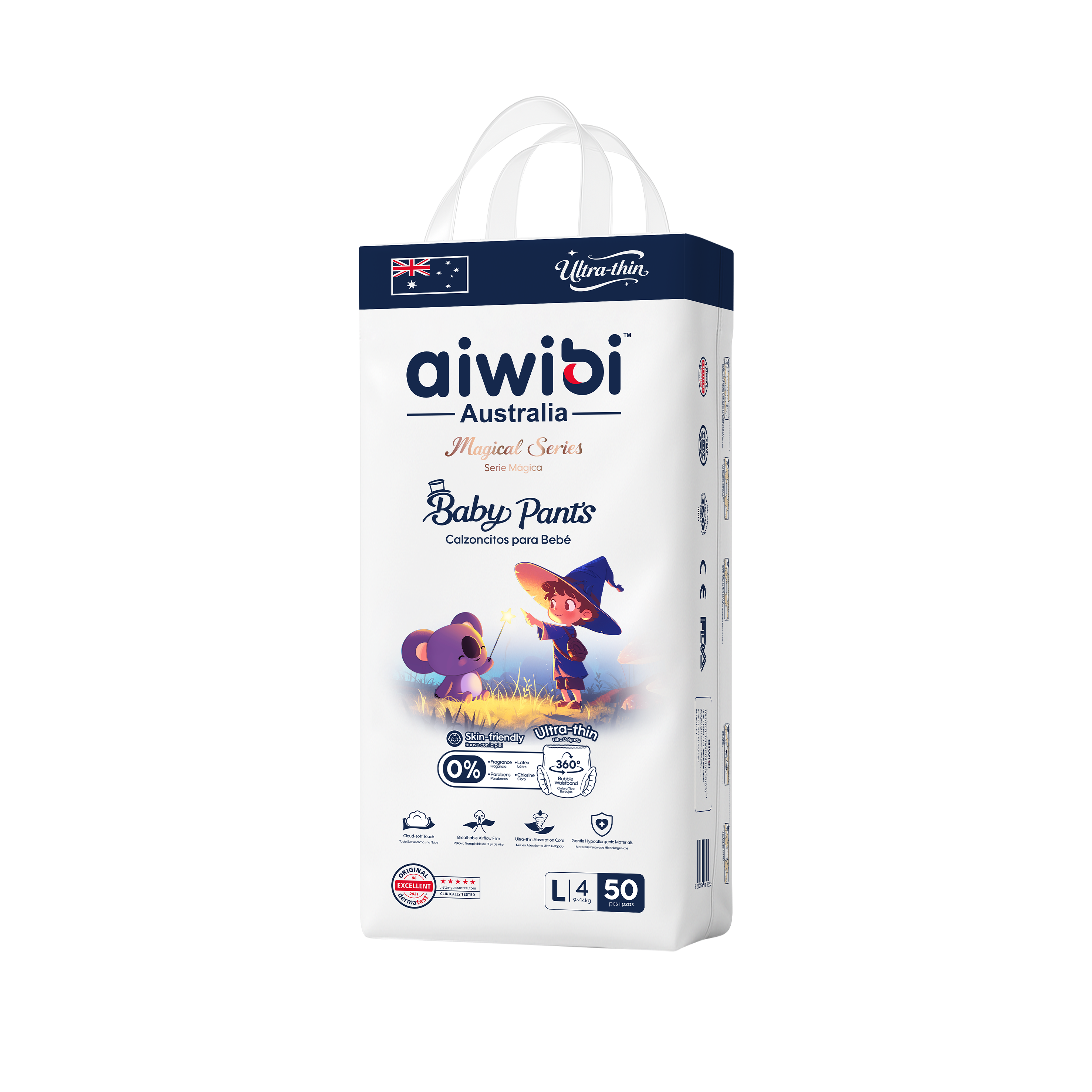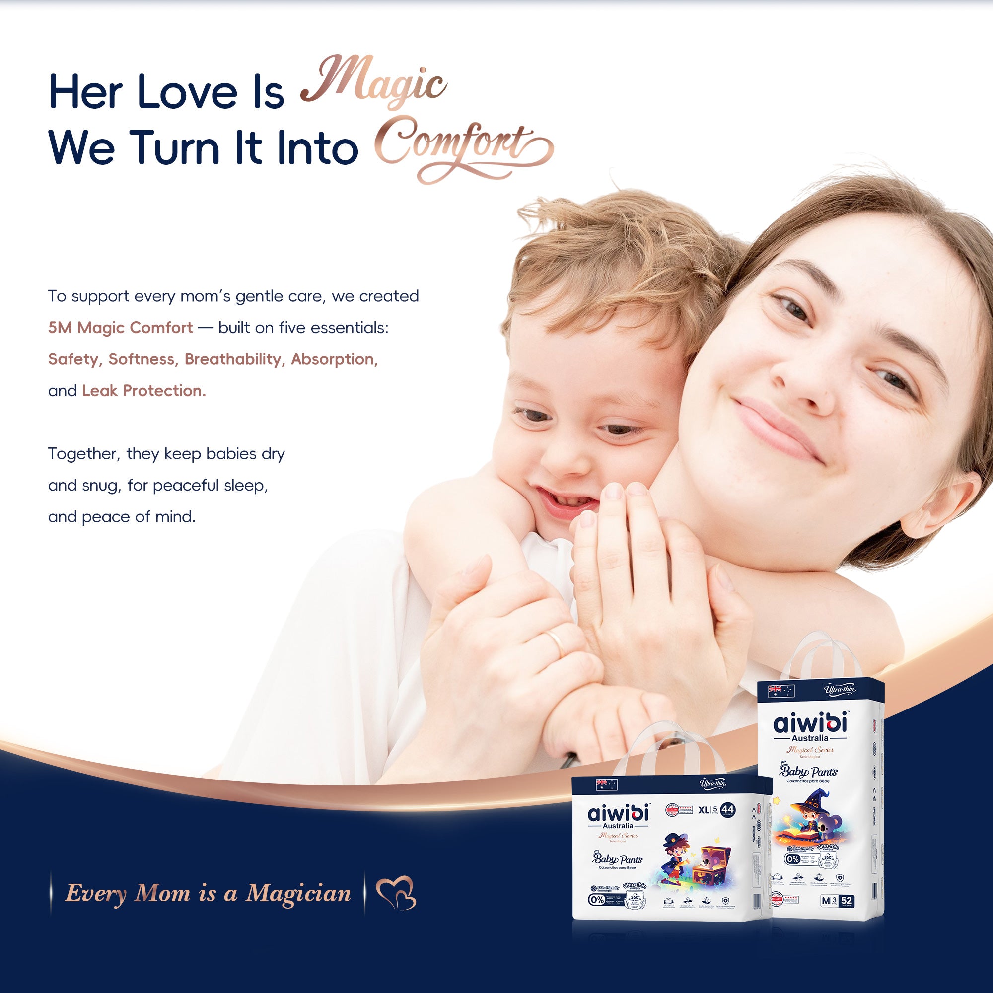 Designed for all-day comfort and dependable protection, Magical Series Baby Pants feature SilkySoft Fabric™ made from ultra-fine 1.2D fibers for a feather-soft, silky touch on delicate skin. The Ultra-Thin Core™, with a 0.1 cm naked-feel design and premium Japanese SAP technology, delivers fast absorption and long-lasting dryness without bulk. A flexible 360° Soft Bubble Waistband™ adapts to your baby’s movements, ensuring a snug, pressure-free fit with enhanced comfort.