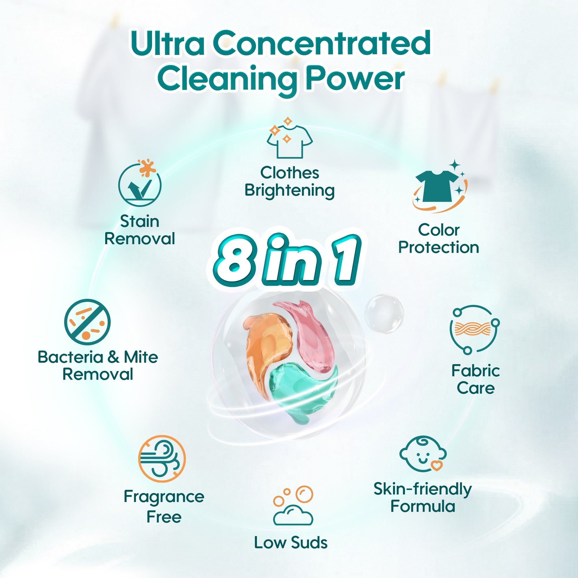 8-in-1 multi-active formula delivering comprehensive cleaning performance.