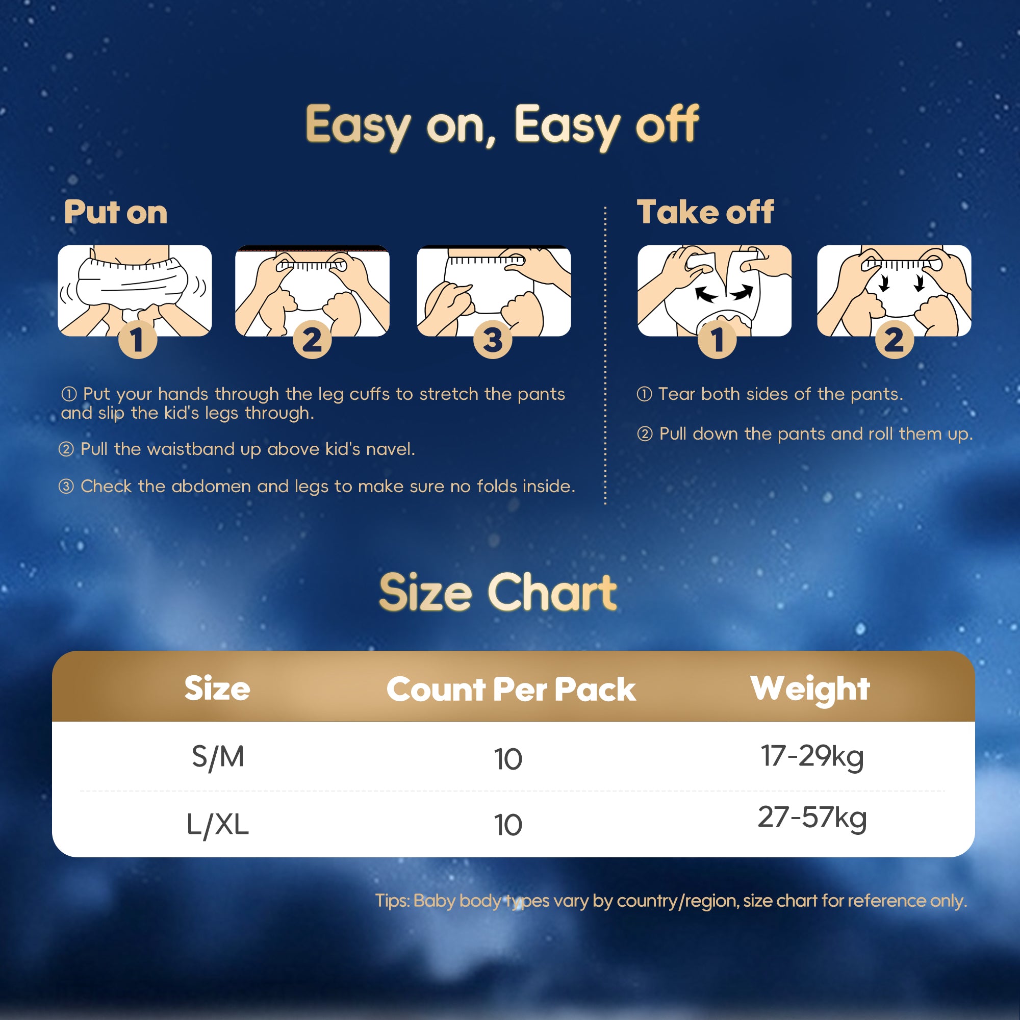 • Some of the raw materials might have a mild natural smell. If you're sensitive to smells, you can air the diapers out before use.